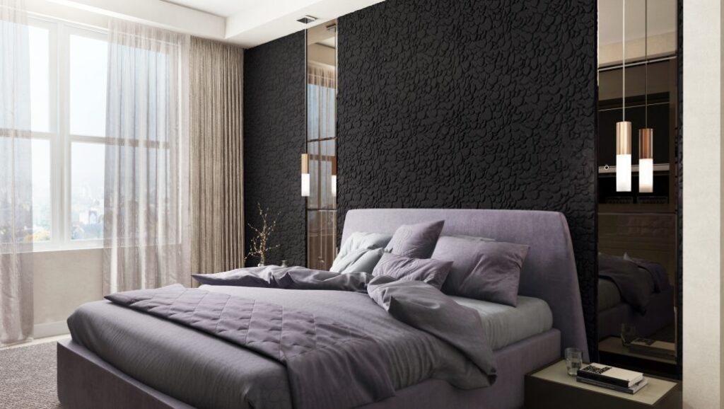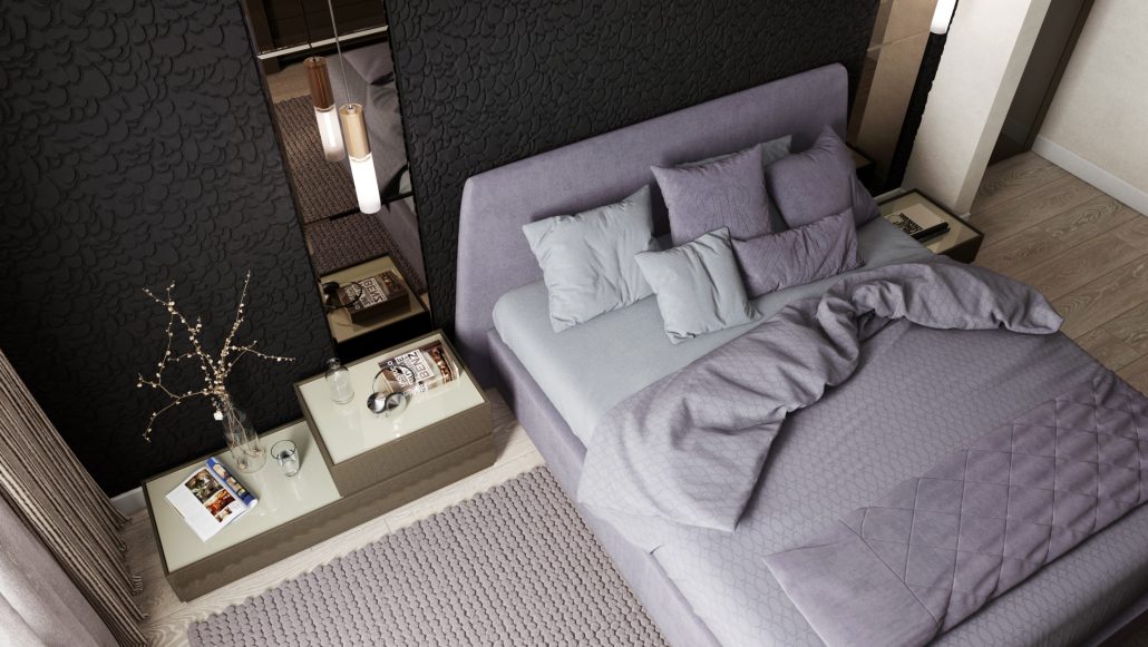 Integrated bedroom headboard millwork with built-in storage
