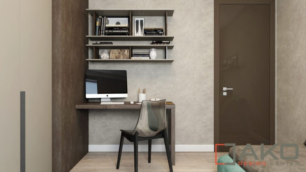 Integrated desk and workspace cabinetry within secondary rooms