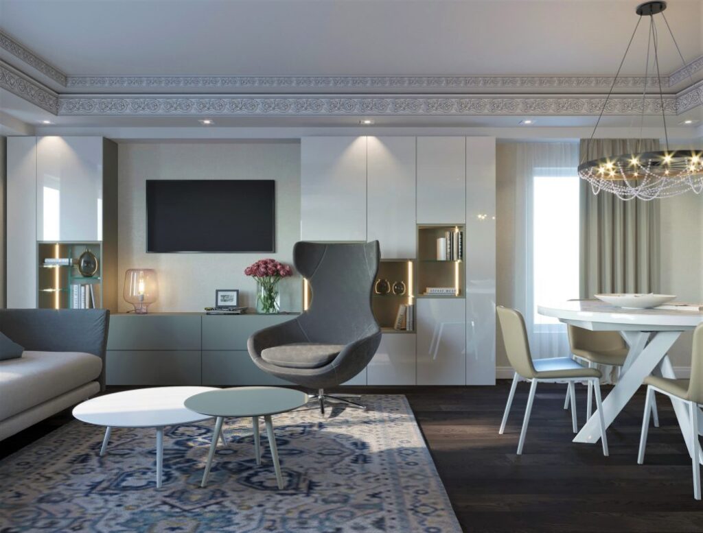 This residential renovation in Mill Basin introduced a cohesive millwork framework across multiple interior spaces, including bedrooms, living areas, and home workspaces. The design strategy focused on integrating storage, workspace, and display elements into continuous cabinetry systems that align with the architectural structure of the apartment.